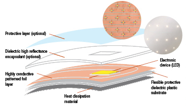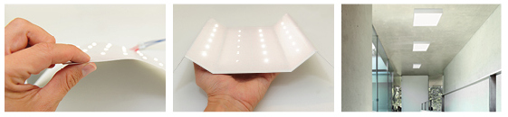 Thanks to an innovative technology we are able to create soft flexible large area panel with embedded electronic devices like LEDs to be used as display, lighting source, panels, design, ...